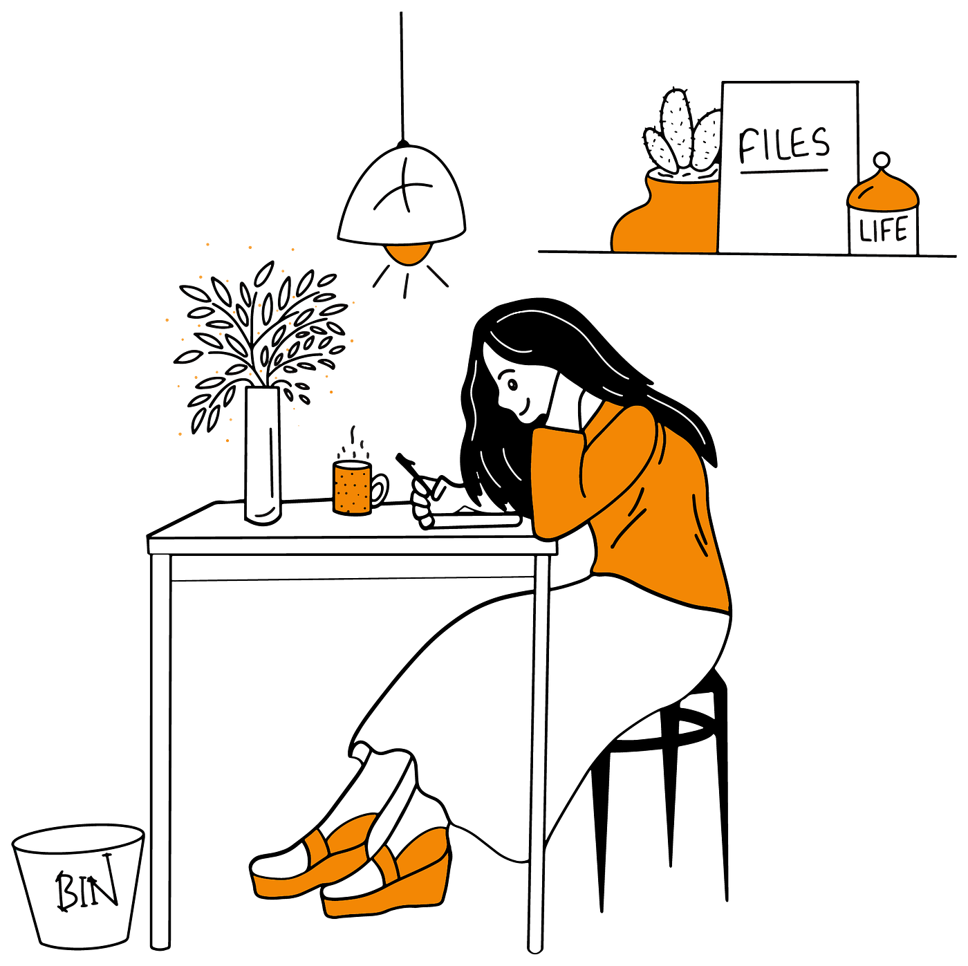 A laundry list of all the thoughts and to-dos that occupies your mind transferred into a paper or a virtual medium. I prefer and recommend the physical medium like paper. When you dump your thoughts and open loops into a medium like paper, you will have enough attentional space to work on the most important things. Pick the most important task out of the list and work only on this.
